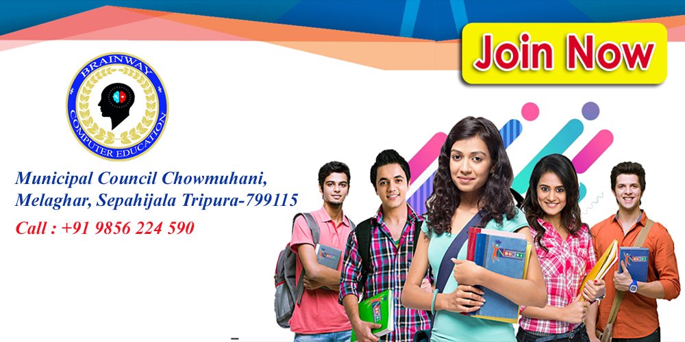 BRAINWAY COMPUTER EDUCATION PVT. LTD. - The Leading Computer Training institute was established in the year 2010 by the Registered under Society Registration Act, Govt of Tripura & ISO 9001:2015 Certified Institute. Also Registered under MSME, Udyam Registration, Govt. of India and BRAINWAY COMPUTER EDUCATION PVT. LTD. is a quality service of BRAINWAY COMPUTER EDUCATION PVT. LTD. is established for the spread of Computer Education all along the line our institute has embarked on the computer program broad-based on the concept of Information and communications Technology. Our basic to advanced computer training curriculums are designed for those new to the computer as well as for those who wish to improve their existing computer skills and to acquire skills for employment or specialized tasks. We offer computer courses for various age groups (seniors, teenagers, and children) which include comprehensive training from basic to advanced computer skills. Our goal is to teach you what you need to know, using patient, experienced and friendly instructors.....