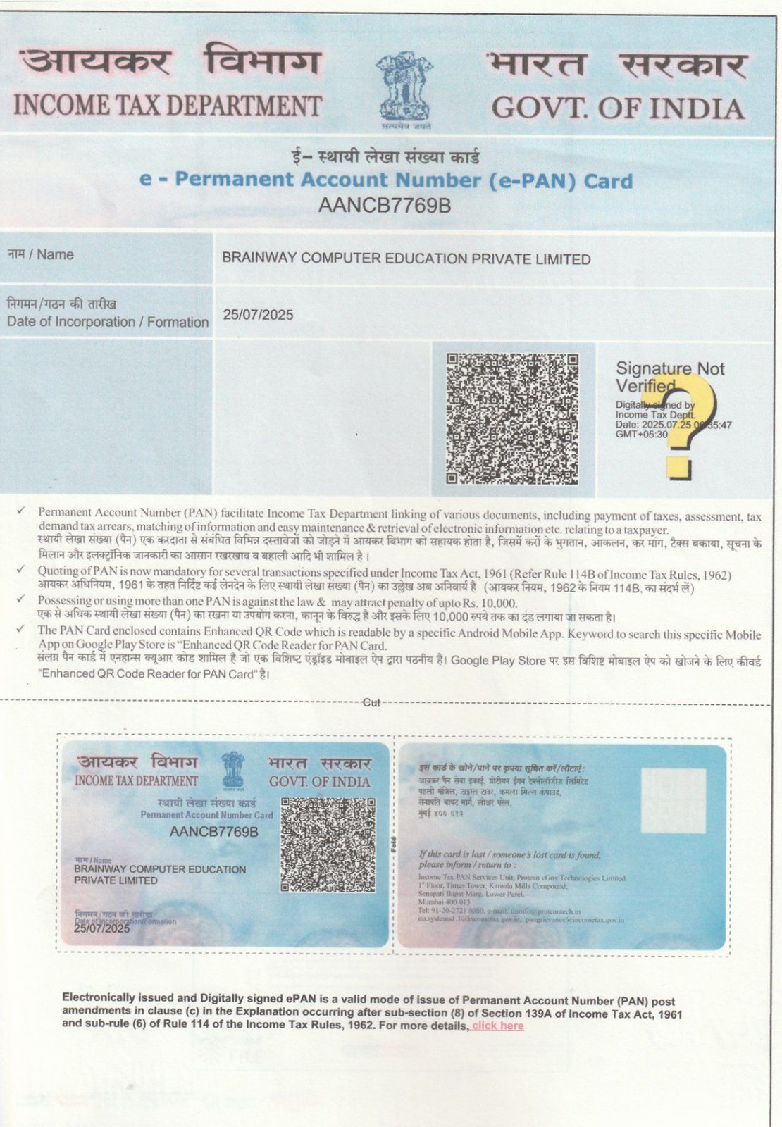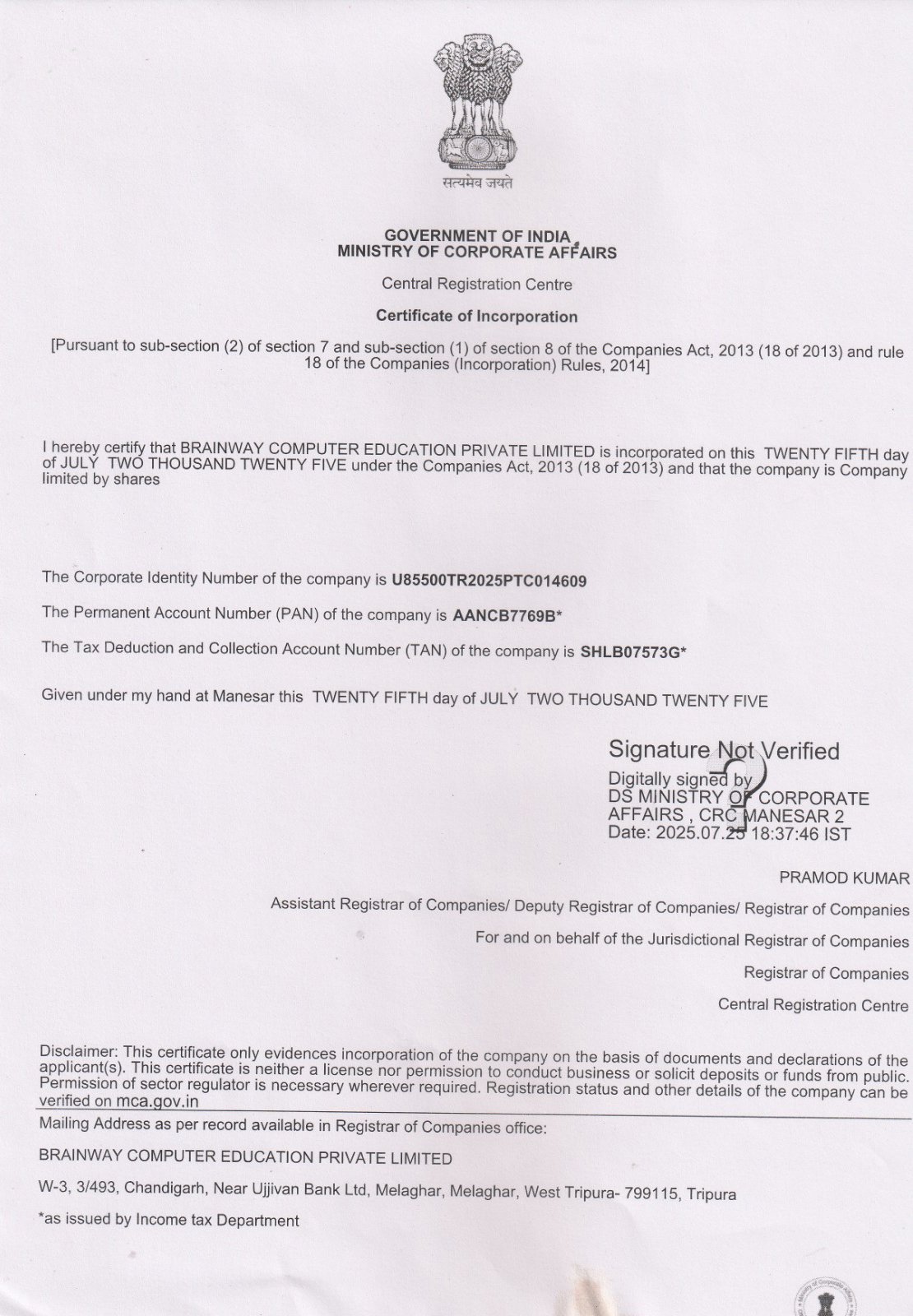 BRAINWAY COMPUTER EDUCATION PVT. LTD. - the Leading Computer Training institute was established in the year 2014 as Resistered By Society Registration Act. Govt. of Tripura also registered under MSME Govt. of India and BRAINWAY COMPUTER EDUCATION PVT. LTD. Centre is a quality Education Provider. BRAINWAY COMPUTER EDUCATION PVT. LTD. is established for the spread of Computer Education all along the line our institute has embarked on the computer program broad-based on the concept of Information and communications Technology. The BRAINWAY COMPUTER EDUCATION PVT. LTD. is trying their hardest to boost up computer learning at all levels of human activity with the help of a band of skilled and experienced professionals. Right now BRAINWAY is not only a single unit but it has flourished into a Group of institutions. In a single sentence...